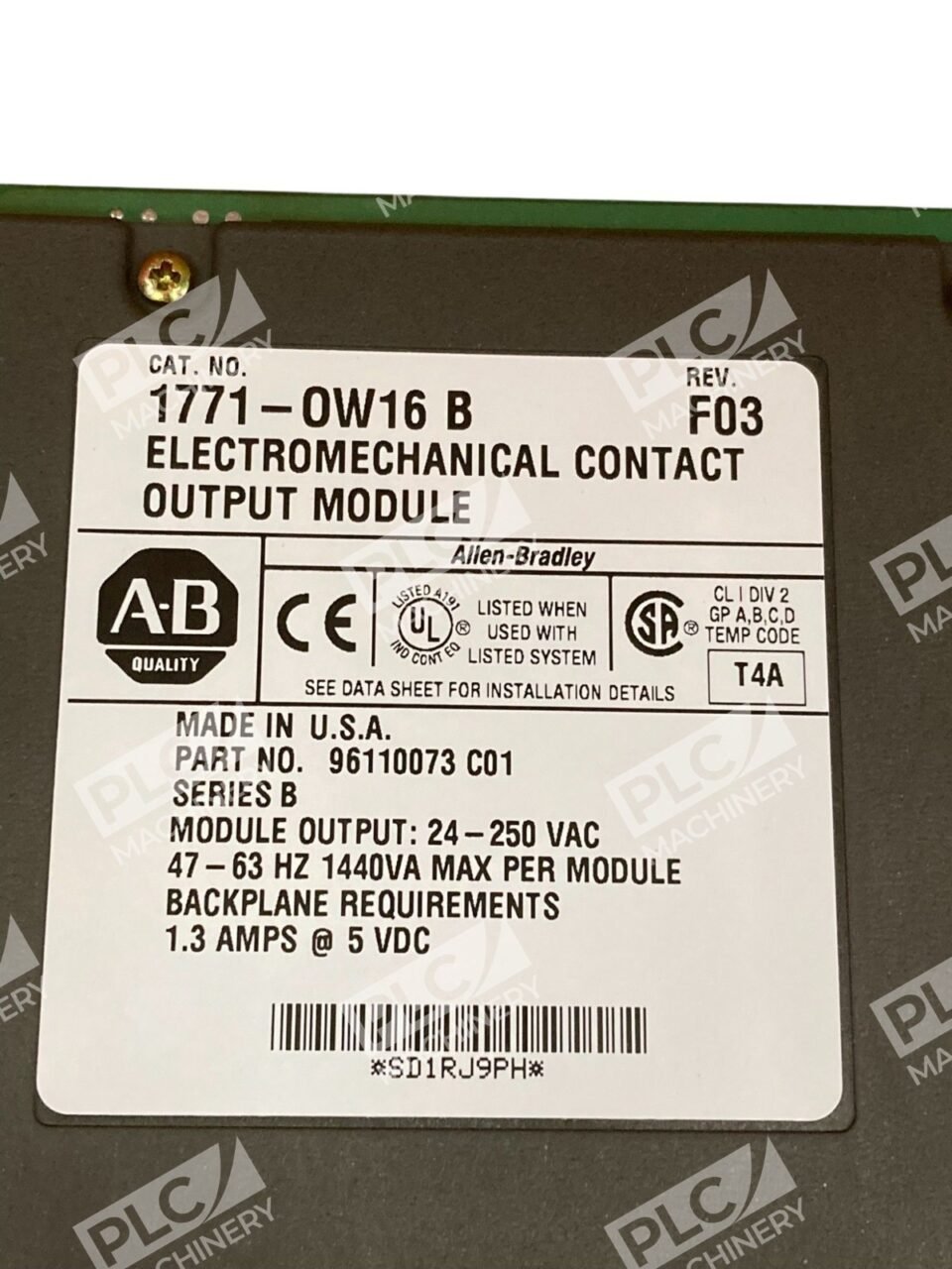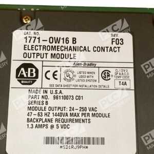 The Allen-Bradley 1771-OW16/B is a 16-point electromechanical contact output module designed for use within the PLC-5 and 1771 Series I/O systems. This module provides reliable relay outputs suitable for controlling various external devices in industrial automation applications.