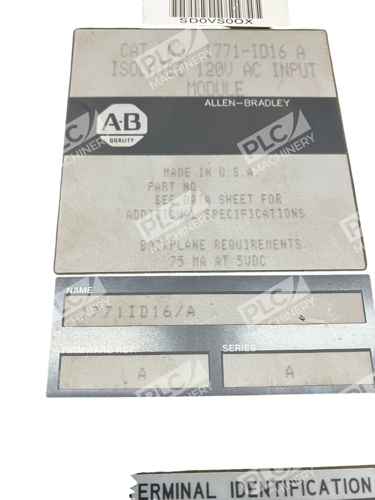 Allen Bradley AB Isolated 120V AC Input Module 1771-ID16 /A Rev A