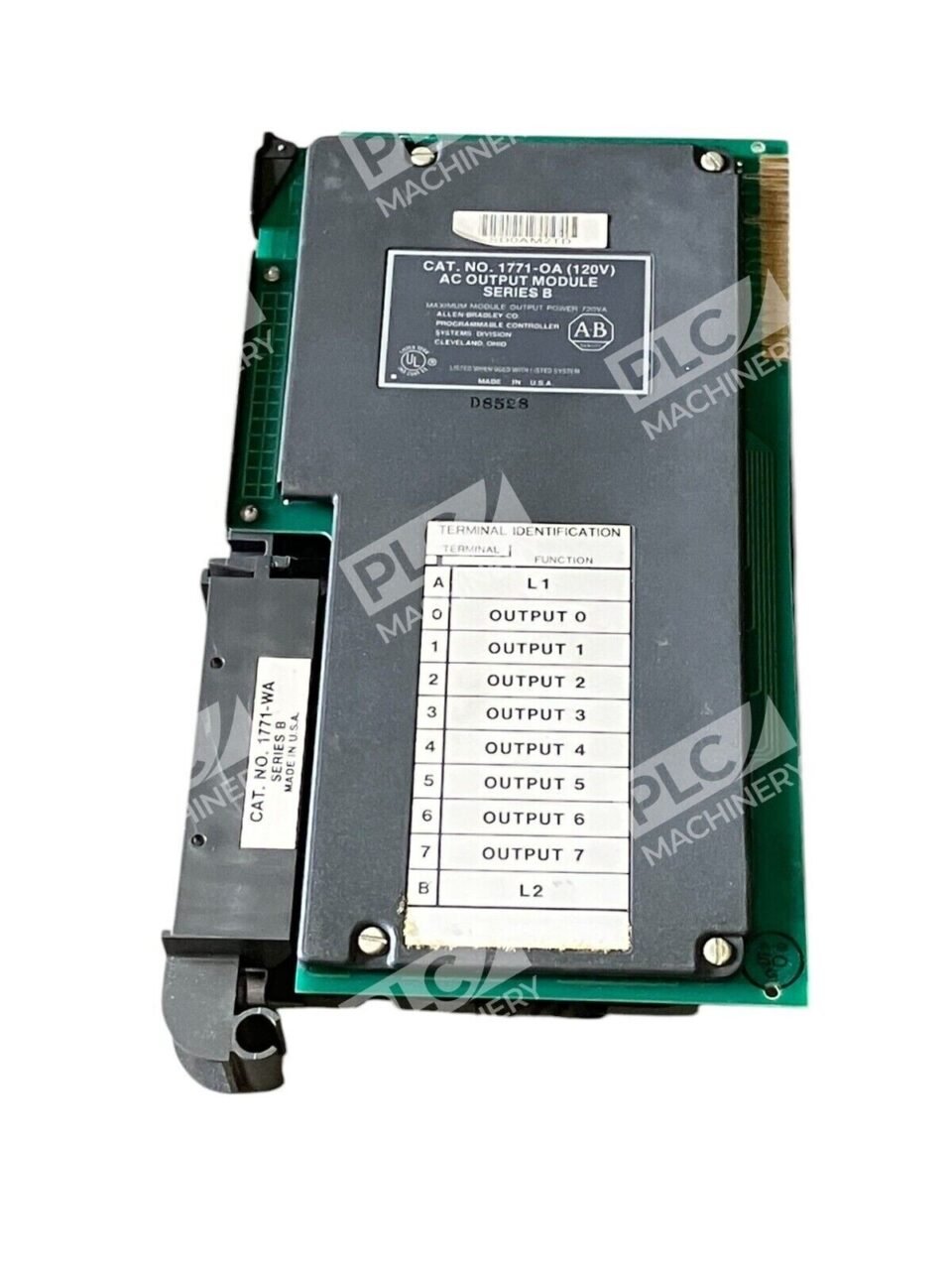 This is an Allen-Bradley AC Output Module from the PLC5 Series, specifically model number 1771-OA. The product is also known as ALLEN BRADLEY 1771-OA SER B. It is a PLC processor used in industrial automation and motion control applications.