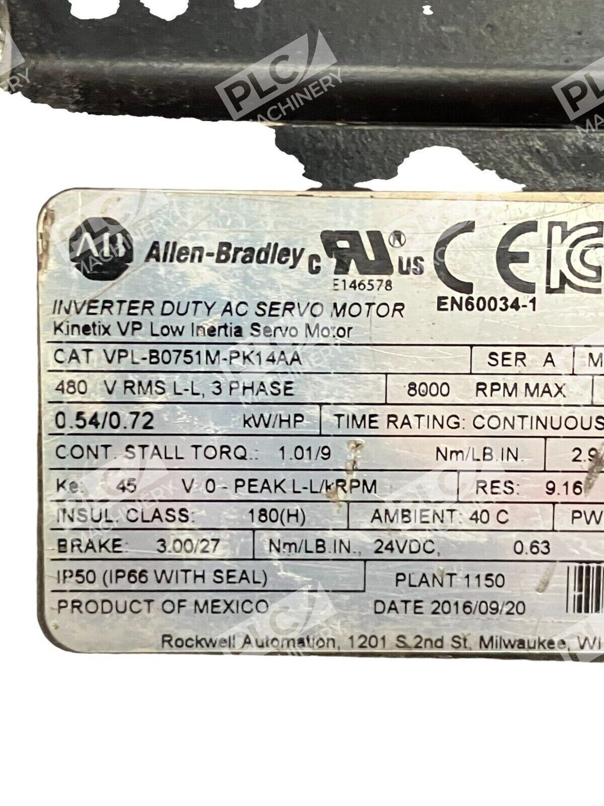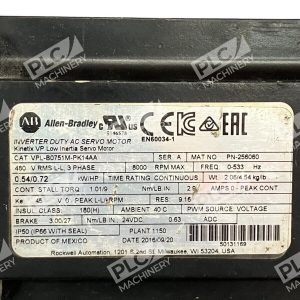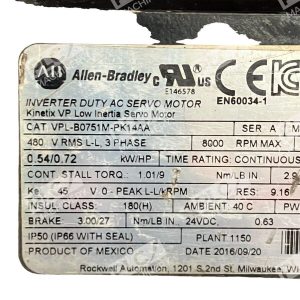 This Allen-Bradley motor, model VPL-B0751M-PK14AA, is a reliable and efficient choice for industrial automation and motion control applications. It is a servo motor suitable for use in a variety of industries, including manufacturing, automotive, and aerospace. The brand is known for its quality products, and this motor is no exception.