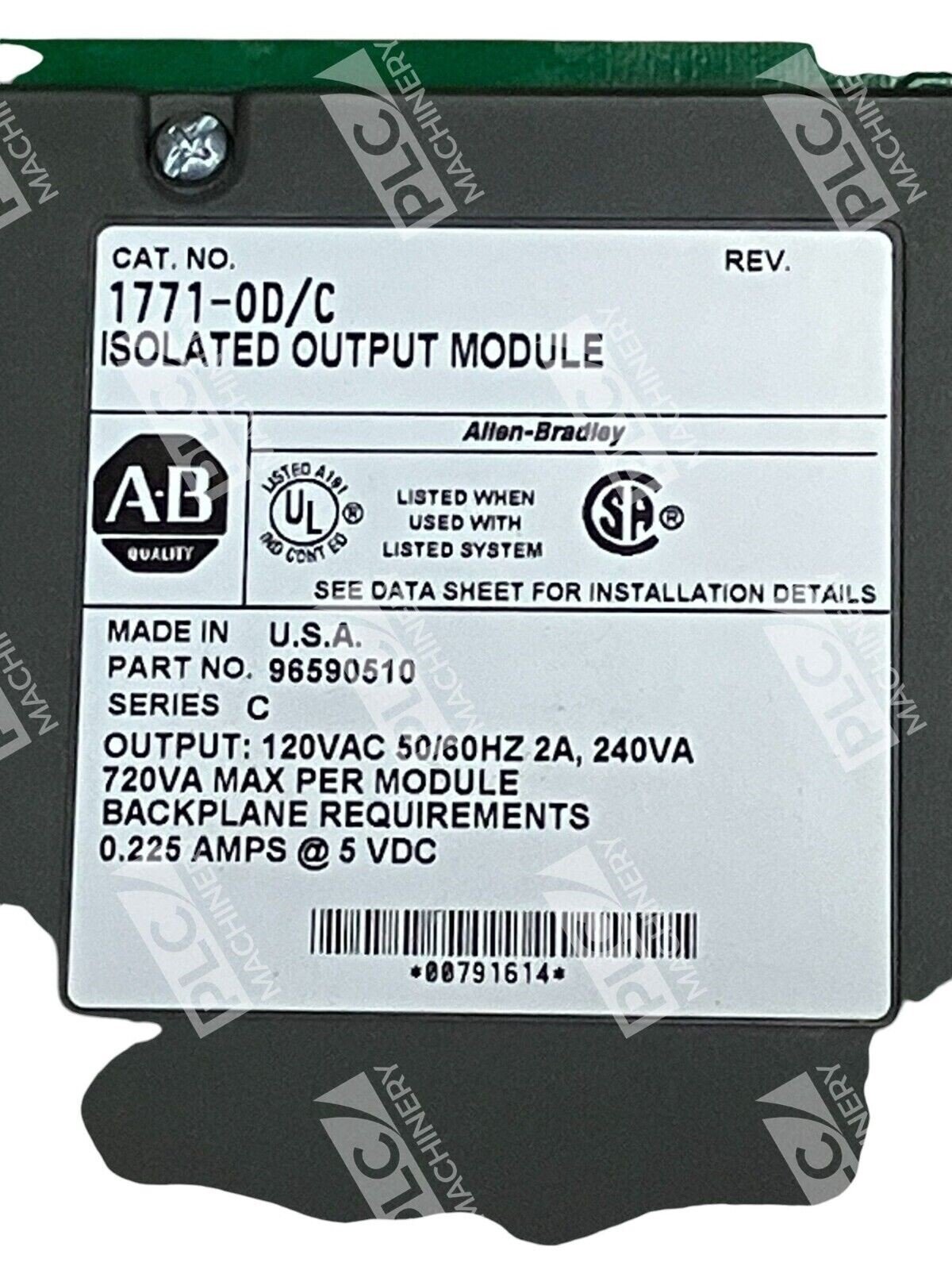 Engineered to withstand demanding industrial environments, the 1771-OD/C offers robust performance with features like high surge current capacity and stringent isolation standards, ensuring dependable operation in critical control applications.