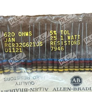 The Allen-Bradley RCR32G621JS is a high-quality carbon composition resistor designed to meet stringent MIL-Spec standards. With a resistance value of 620 ohms, a power rating of 1 watt, and a tolerance of ±5%, this resistor is well-suited for applications requiring reliable performance under demanding conditions.