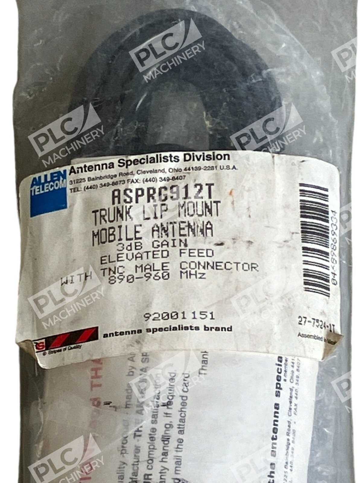 Enhance your radio communication with the Allen Telecom Trunk Lip Mount Mobile Antenna ASPRG912T. This antenna is designed for UHF band and is perfect for those who are looking for a reliable and efficient antenna. The antenna is made by Allen Telecom, a trusted brand in the industry, and is designed to provide excellent performance and durability.