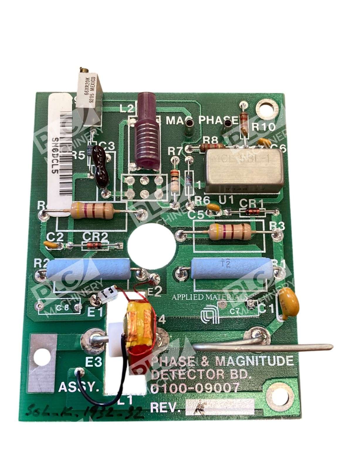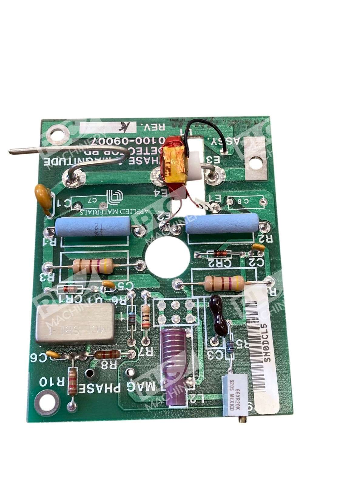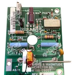 The Applied Materials 0100-09007 Phase & Magnitude Detector REV. K is a specialized printed circuit board (PCB) designed to accurately measure and analyze the phase and magnitude of signals within semiconductor manufacturing equipment.