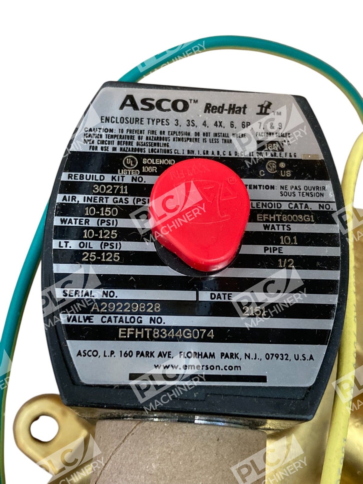 ASCO RPLS HT8344A75 1/2" Pipe 10.1W Red Hat II Solenoid Valve EFHT8344G074
