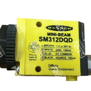 The Banner 380mm Mini Beam Diffuse Photoelectric Sensor SM312DQD is a high-quality sensor designed for industrial automation and motion control applications. With a diffuse photoelectric sensor type, it provides accurate detection of light and darkness, making it ideal for various automation tasks. The sensor has a DC current type and features a connector termination type for easy installation. Its output type is bipolar, consisting of 1 NPN and 1 PNP transistor, ensuring reliable and precise sensor readings. This product by Banner is a versatile and efficient solution for sensing and control systems in a range of industrial settings.