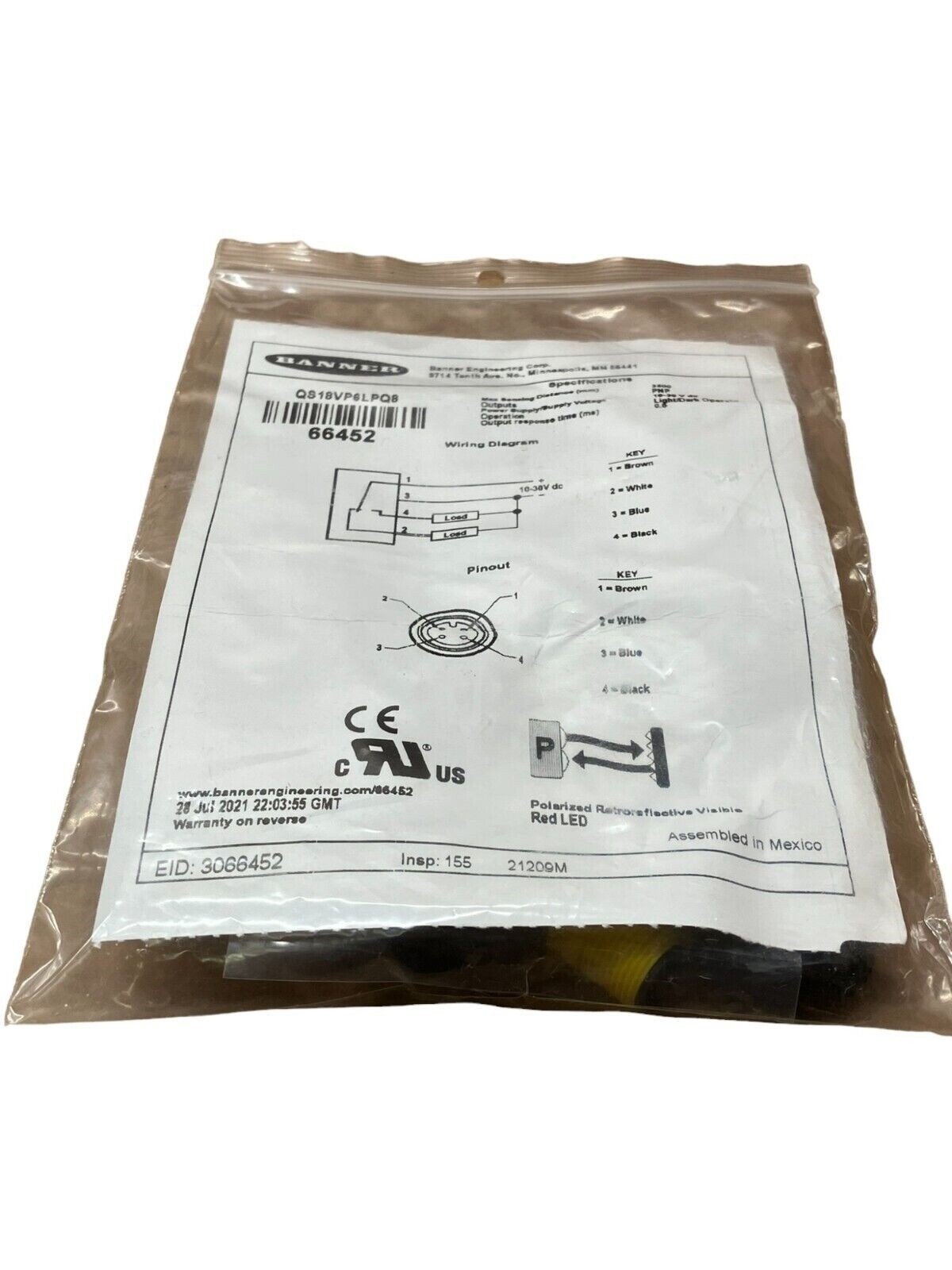 The Banner QS18VP6LPQ Photoelectric Sensor, part number 66452, is a versatile and reliable solution for a wide range of industrial automation applications. Designed with precision and durability in mind, this sensor offers exceptional performance in object detection tasks.