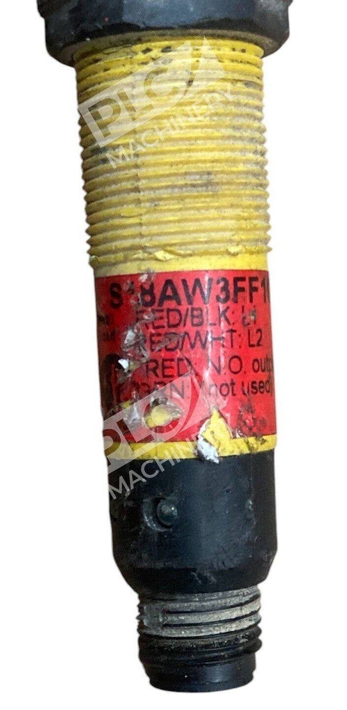 The Banner S18AW3FF100Q1 is a robust photoelectric sensor from the S18 Series, designed for reliable performance in demanding industrial environments. Its encapsulated design ensures durability and resistance to harsh conditions.