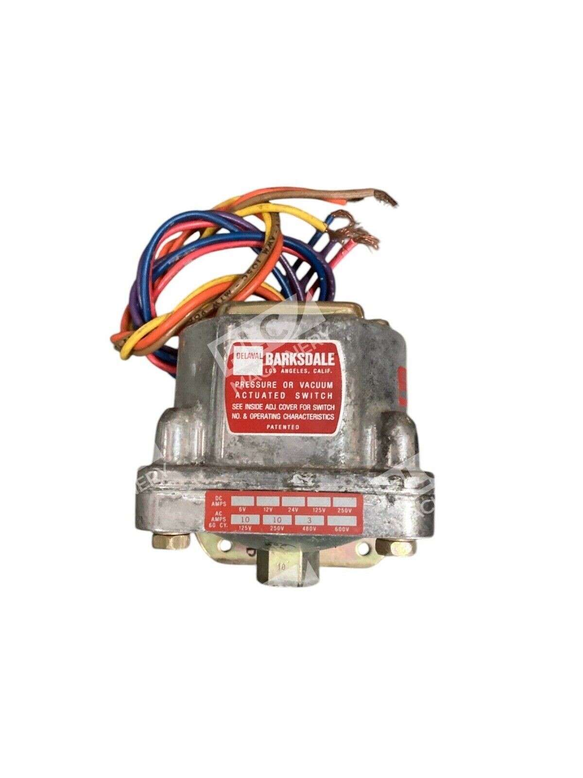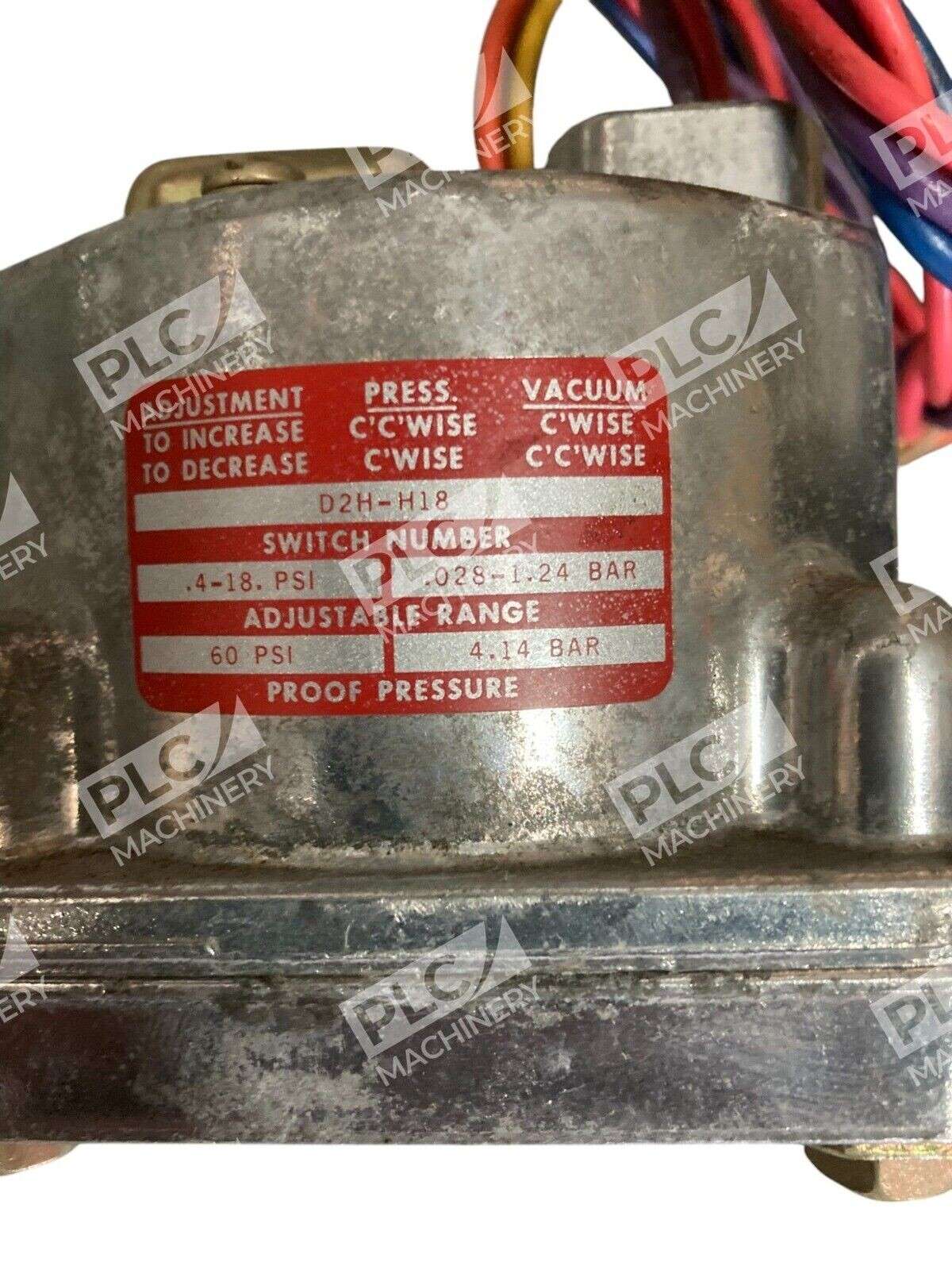 This is a Barksdale Delaval pressure or vacuum actuated switch model D2H-H18 with a pressure range of 0.4-18 PSI and a maximum pressure of 60 PSI. It features a screw termination type, silver color, and switch fuse type, making it suitable for industrial applications.