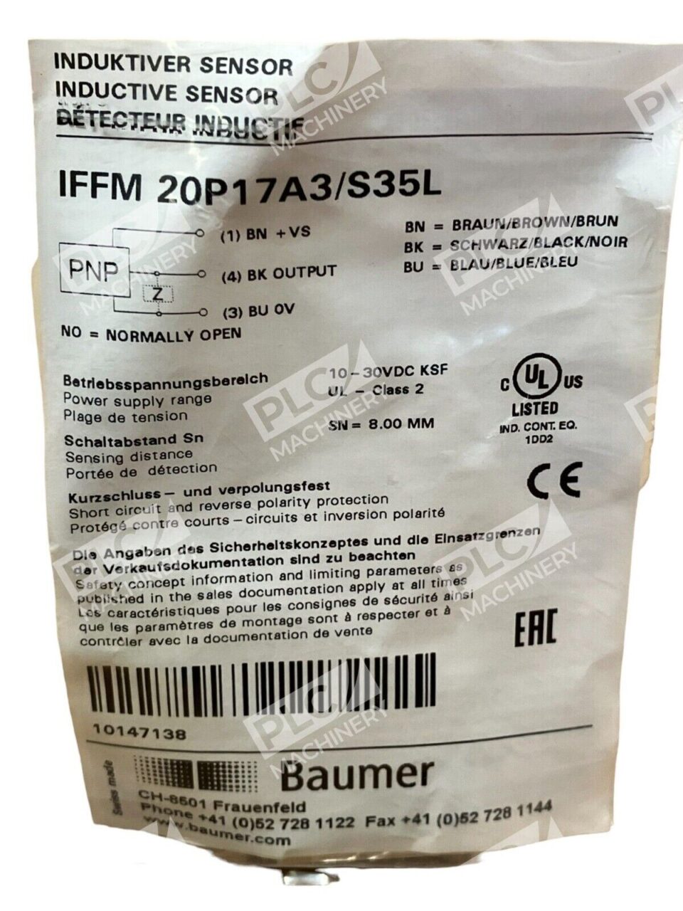 - Output Configuration: Equipped with a PNP normally open (NO) output, facilitating straightforward integration with control systems.