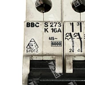 The BBC 16A Circuit Breaker S273K16A is a circuit breaker manufactured by ABB. It is designed for industrial and commercial electrical applications, providing protection by automatically cutting off power in the event of a short circuit or overload. It has a current rating of 16A and is part of the S273 series.
