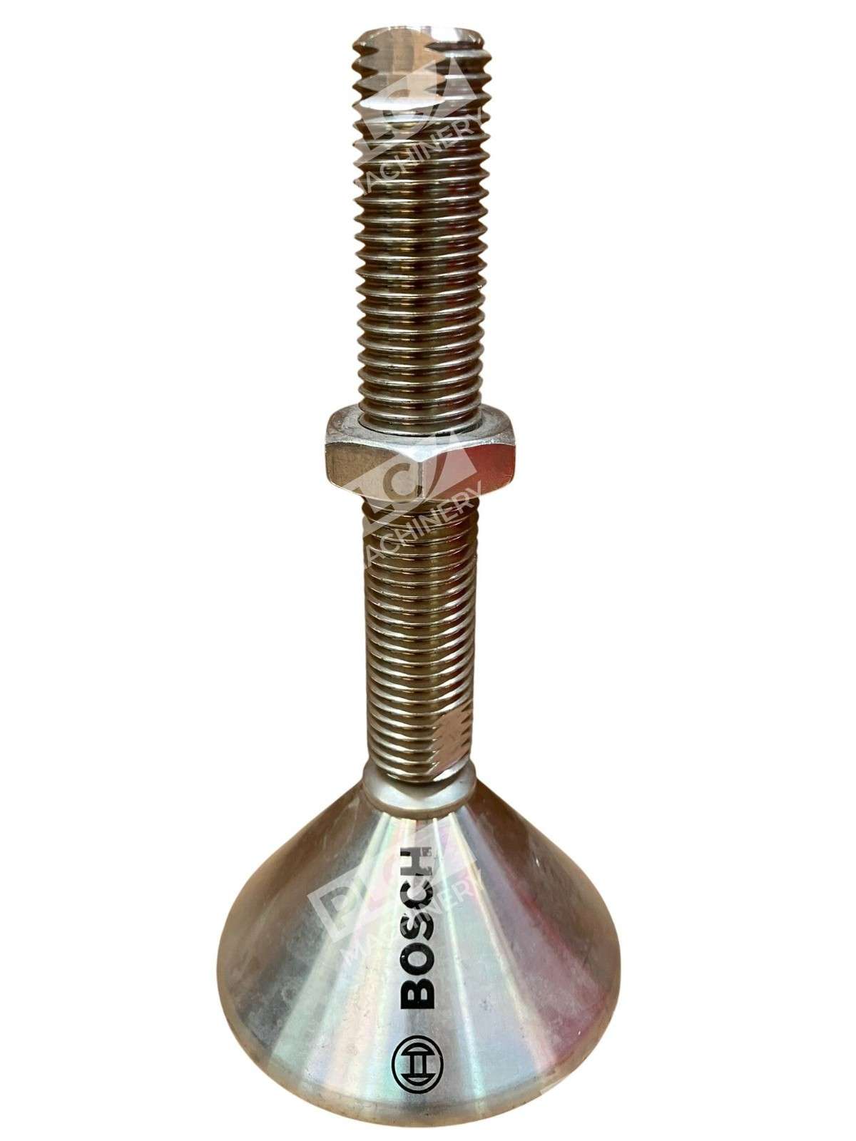 The Bosch Rexroth Adjustable Leveling Foot is a high-quality machine foot made of galvanized steel. This round-shaped unit is designed to provide stability and prevent tipping of machinery or equipment. With a brand name known for reliability and durability, this product is a valuable addition to any industrial setting requiring precise leveling and stabilization.