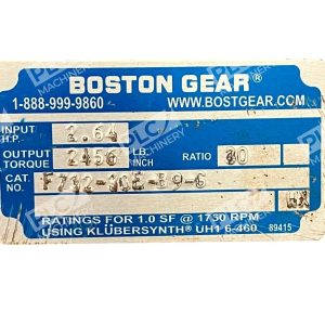 The Boston Gear 2.64HP 2456LBINCH 30:1 Worm Speed Reducer is a high-quality industrial automation component designed for precise motion control. This speed reducer, with a 30:1 gear ratio, is specifically manufactured by Boston Gear to provide reliable performance and efficiency in a variety of industrial applications. With its sturdy construction and reputable brand reputation, this worm speed reducer is a valuable component for businesses seeking precise and smooth motion control in their machinery or equipment.