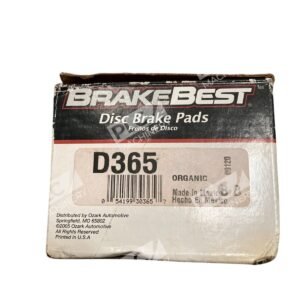 Brake Best BB Organic 09120 Disc Brake Pads D365 are front brake pads that are slotted and suitable for solid rotors. They have a non-asbestos organic pad material and come in a pack of 2 with a lifetime warranty. These direct replacement brake pads do not include mounting hardware and are BEEP certified. The brand is Brakebest, and the Other Part Number is 924.