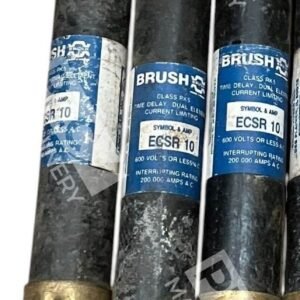 The Brush ECSR10 is a 10-amp, 600-volt, dual-element, time-delay fuse designed for superior protection in AC power distribution systems. This lot includes three fuses, ensuring you have reliable spares for your electrical needs.