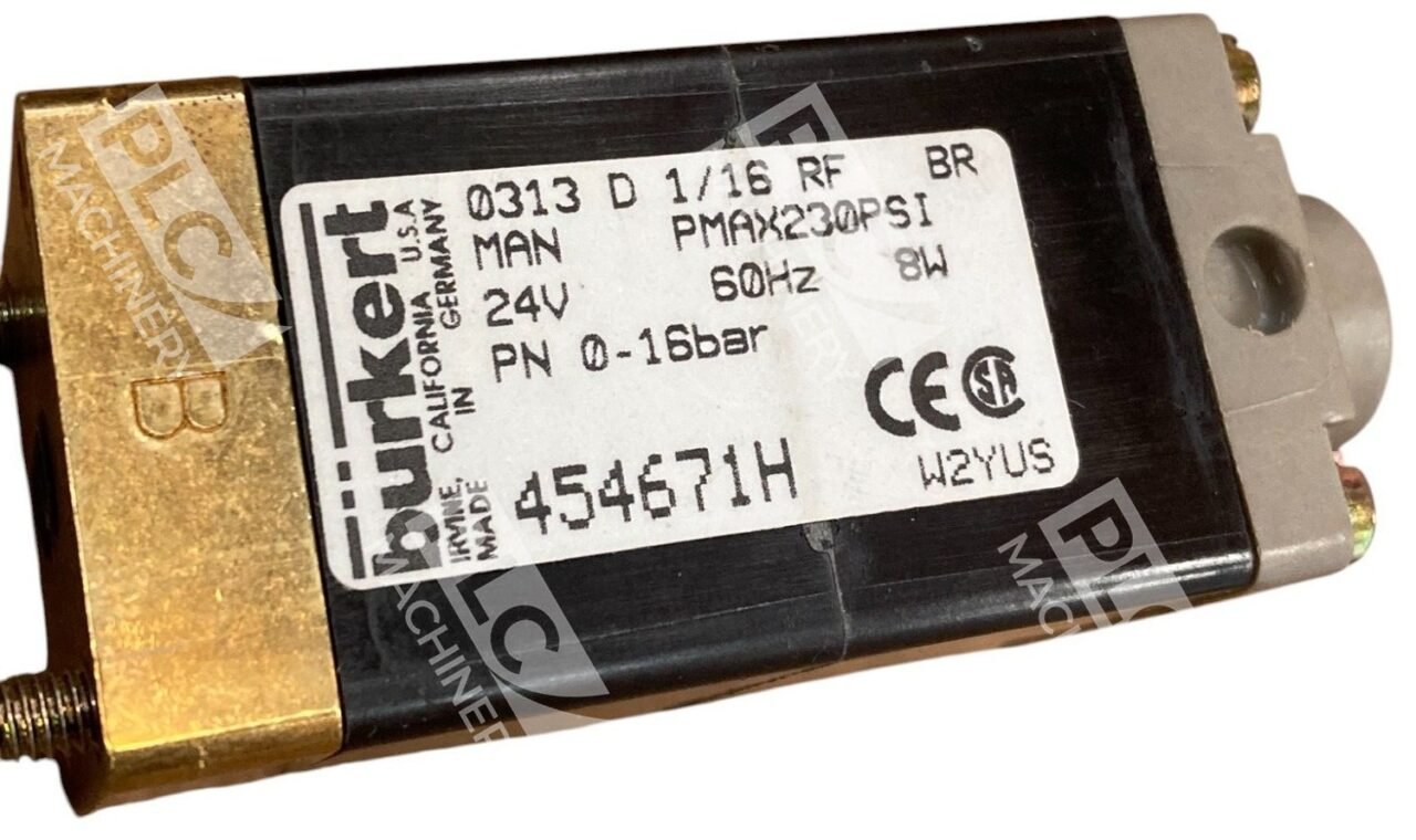 Burkert 0313 D 1/16 RF BR Pmax 230PSI 24V 60Hz 8W 0-16BAR Solenoid Valve 454671H