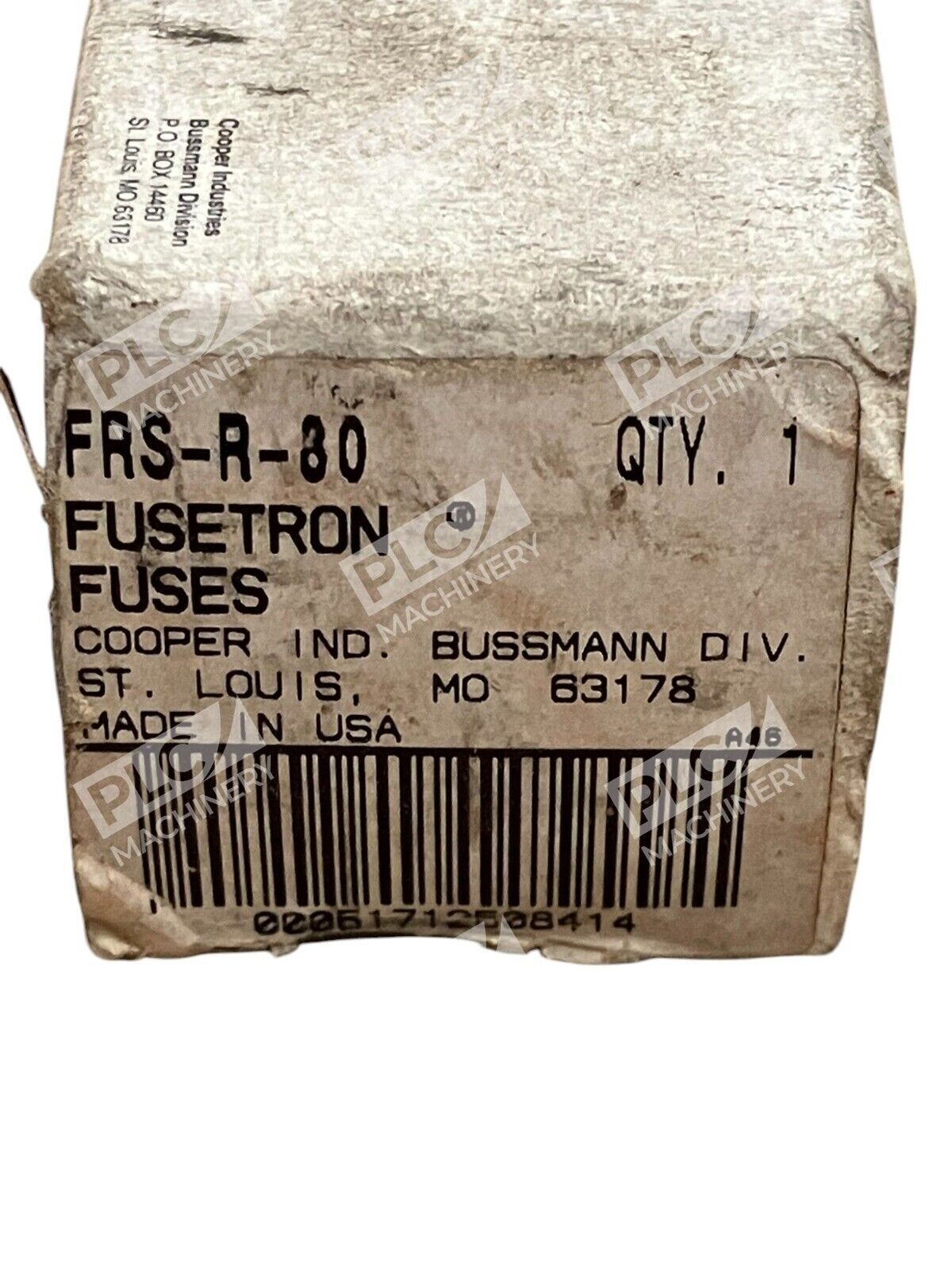 This is a Bussmann Cooper Fusetron 80A Fuse FRS-R-80 with a blade body type, green color, and current rating of 71-80 A. It is made of Fiberglass/Glass-Reinforced Plastic (GRP) and has a maximum amperage of 80 A. The fuse provides dual function protection against overload for AC/DC current with a voltage range of 551-600 V. It is a current-limiting fuse with protection properties for overload protection.