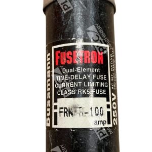 The Bussmann Cooper Fusetron Class RK5 Time Delay 100A Fuse FRN-R-100 is a silver D-Type Cartridge fuse suitable for interior use. It has a maximum amperage of 100A and a voltage of 120V. The fuse is made of fiberglass/glass-reinforced plastic and copper materials, with a length of 1 inch, height of 6 inches, and width of 1 inch. It has a Type D tripping characteristic and is a current-limiting fuse with time-delay/slow-blow speed.