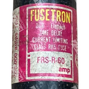 The product is a Bussmann Cooper Fusetron Class RK5 Time Delay 60A Fuse with the model number FRS-R-60. It is designed for electrical equipment and supplies, specifically in the category of fuses and links. The brand of the fuse is Bussmann, and it is located in SHB 7.