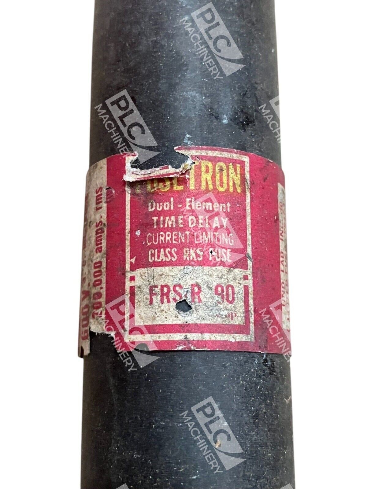 This is a Bussmann Cooper Fusetron dual element 90A fuse model FRS-R-90. It is designed for use in electrical equipment and supplies, specifically in industrial settings. The brand of the fuse is Fusetron, known for producing high-quality fuses and links.