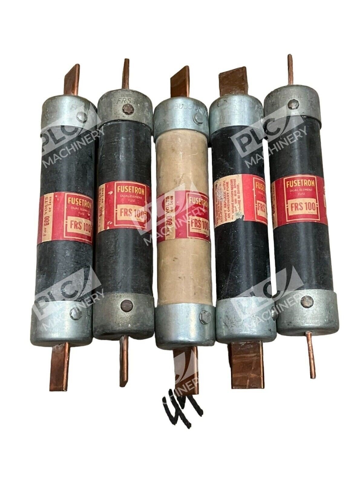This product is sold as a lot of five (5) Bussmann FRS-R-100 fuses, ensuring you have the necessary components for multiple installations or replacements.