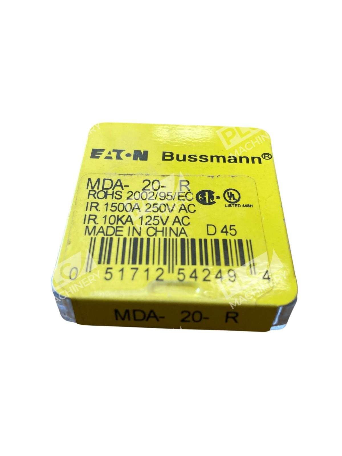 The Bussmann MDA-20-R Time Delay 20A 250V Fuse is a high-quality electrical component designed by Eaton Bussmann. This unit contains 4 fuses, each rated at 20A and 250V, providing reliable protection for electrical equipment and supplies in various industrial and business settings. The time delay feature of this fuse ensures that transient overloads are not unnecessarily disconnected, enhancing the overall efficiency and performance of the electrical system.