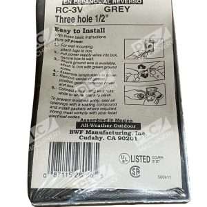 The BWF RC-3V Weatherproof Single-Gang Electrical Cover is a durable and reliable solution for protecting outdoor electrical connections. Constructed from high-quality die-cast metal, this cover is designed to withstand harsh environmental conditions, ensuring long-lasting performance.