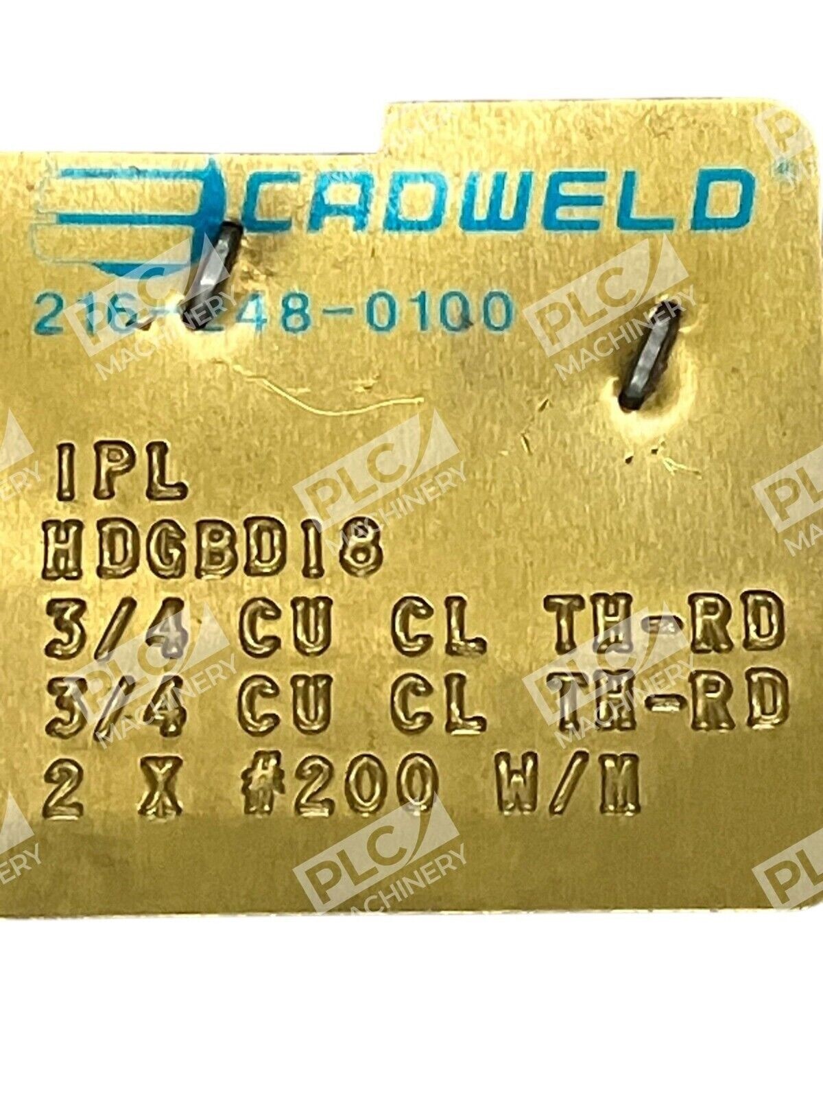 This is a Cadweld IPL 216-248-0100 Ground Rod Splice/Grounding Receptacle Mold HDGBD18 manufactured by Erico. It is a mold used for creating ground rod splices and grounding receptacles. The item type is a mold and it is not a modified item.