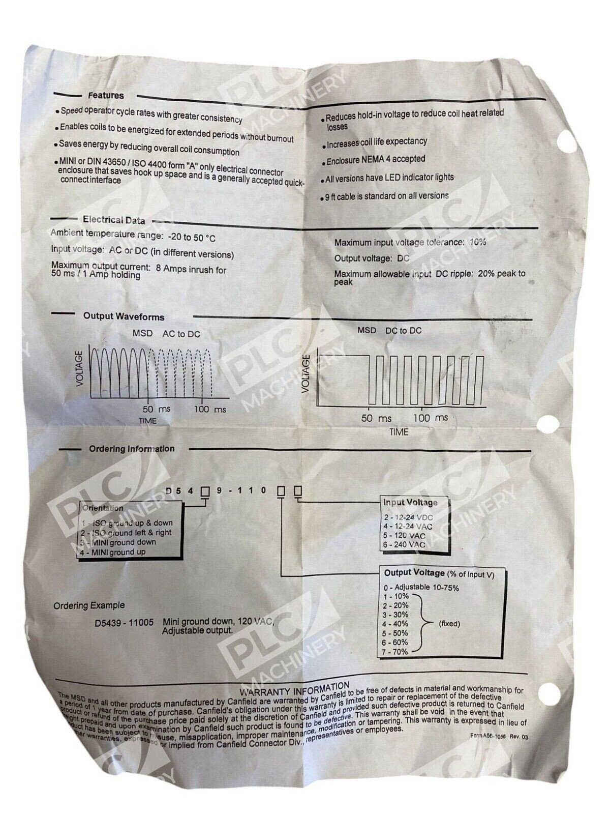 - Voltage Compatibility: Operates efficiently with a 120VAC power supply, ensuring seamless integration into standard industrial electrical systems.