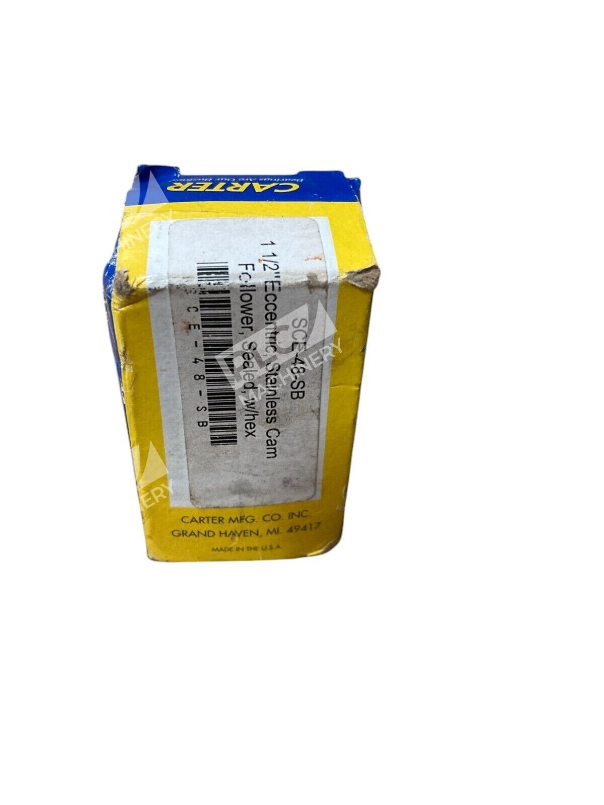 This product is a Carter brand 1-1/2″ stainless steel cam follower with an eccentric stud type, model SCE-48-SB. It is sealed and includes a hex feature for easy installation. The cam follower is designed for industrial applications in mechanical power transmission and automation systems.