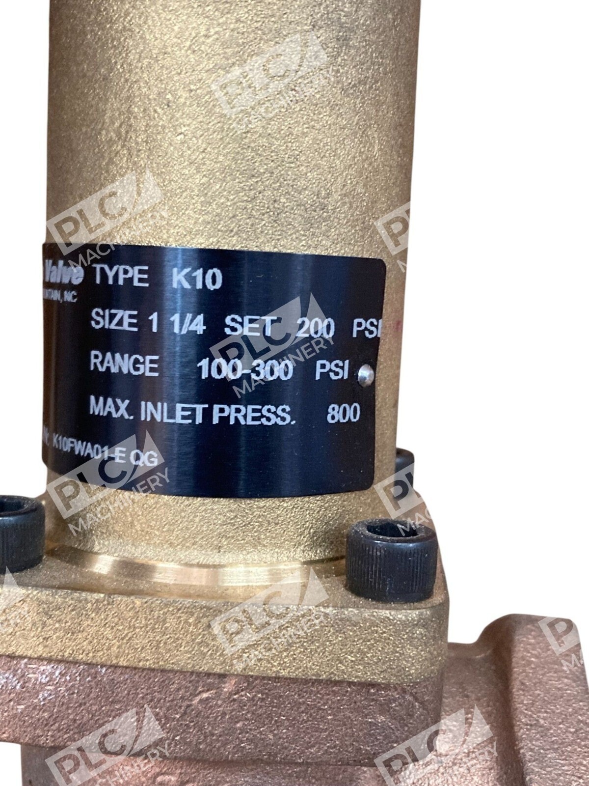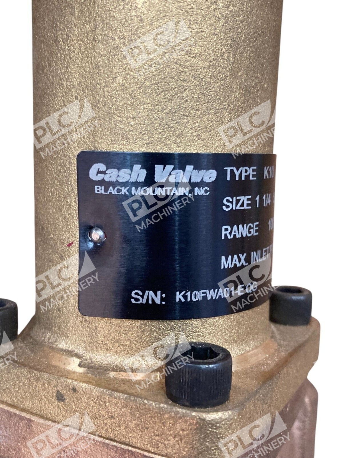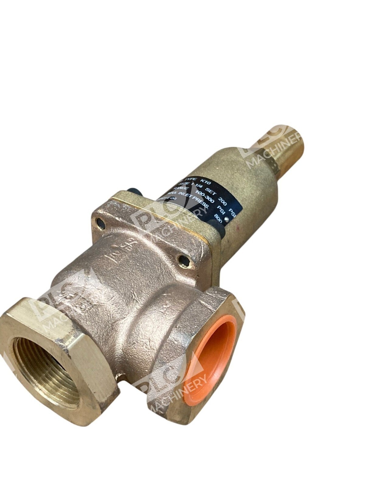 The Cash Acme K10FWA01-E QG 1-1/4 200PSI 100-300PSI Type K10 relief valve is a high-quality brass valve designed for industrial use. This valve features a 1-inch inlet diameter and outlet diameter, with a maximum adjustable pressure of 300 psi and a minimum adjustable pressure of 100 psi. The model K-10 is known for its durability and reliability, making it a dependable choice for various hydraulic, pneumatic, and plumbing applications. This relief valve is a great addition to any system requiring precise pressure control and maintenance.