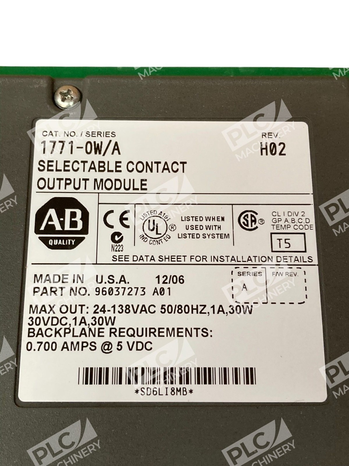 CATNO-1771-OW161B Series A – Allen-Bradley – AB Selectable Contact Output Module 1771-OW