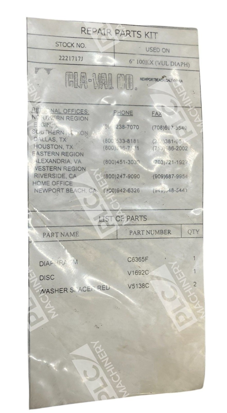 The Cla-Val RPPT 100KX VUL6 NBR Diaphragm Repair Kit 2221717J is a solution designed specifically for CLA VAL valves. This unit includes one diaphragm repair kit, providing the necessary components to maintain and repair valves in a range of industrial settings. Made with quality materials, this product ensures durability and reliable performance for hydraulic, pneumatic, and other systems requiring precise valve control. With its specific fit and high-quality construction, this repair kit is a valuable tool for maintaining the efficiency and effectiveness of CLA VAL valves.
