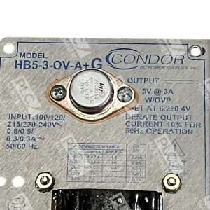 Experience reliable performance with the Condor 5V 3A Power Supply, model HB5-3-OV-A+G. Designed to meet your power needs, this supply boasts a nominal current rating of 3A, with an equivalent inrush current rating, ensuring consistent output for your electronic devices.