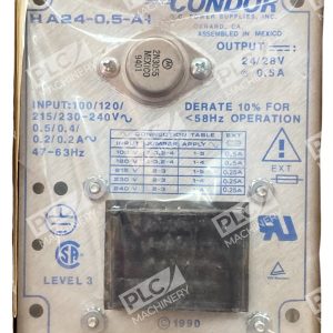 The Condor DC Power Supplies 13163F 24/28V 0.5A Power Supply HA24-0.5-A+ is a reliable and efficient power supply designed for industrial automation and motion control systems. With an output voltage of 24V-DC and a power output of 25W, this power supply is suitable for various PLC processors and HMI systems. The model HA24-0.5-A from Condor offers a stable output current of 0.5 A AMP, making it a dependable choice for powering your industrial automation needs. With an input voltage of 120V-AC, this power supply provides a consistent and stable power source for your equipment.