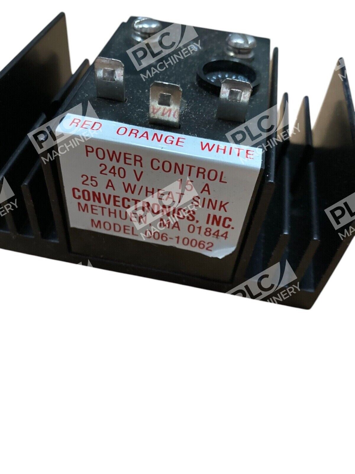 The Convectronics 15A 240V 25A Power Control 006-10062 is designed for industrial automation applications. It is equipped with a heat sink for efficient heat dissipation, ensuring reliable performance. As a product under the CONVECTRONICS brand, it is known for its quality and durability in PLC processes. This power control unit supports a maximum current of 25A at 240V, making it suitable for various industrial automation and motion control systems.