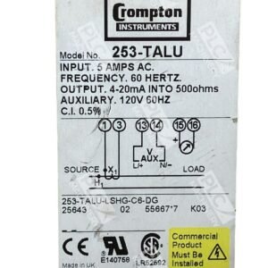 The Crompton Industries Paladin 253-TALU is a high-precision AC current transducer designed to convert electrical parameters into industry-standard DC output signals. Engineered for reliability and accuracy, this transducer is ideal for various industrial automation and motion control applications.