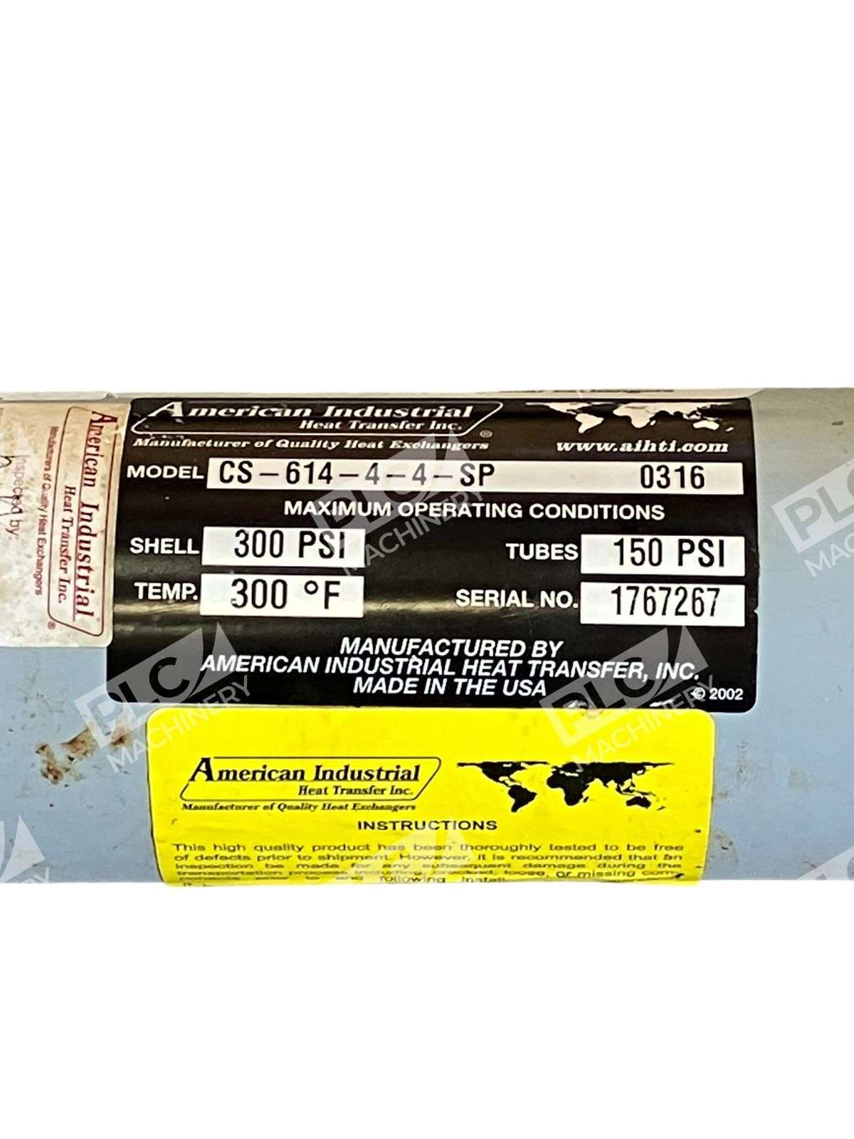 CS-614-4-4-SP – American Industrial – Shell 300 PSI & Tube 150 PSI Heat Exchanger