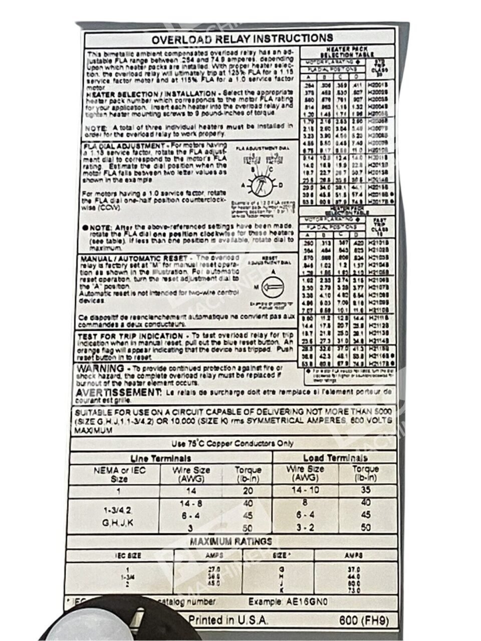 - Frequency Rating: 50 to 60 Hz
