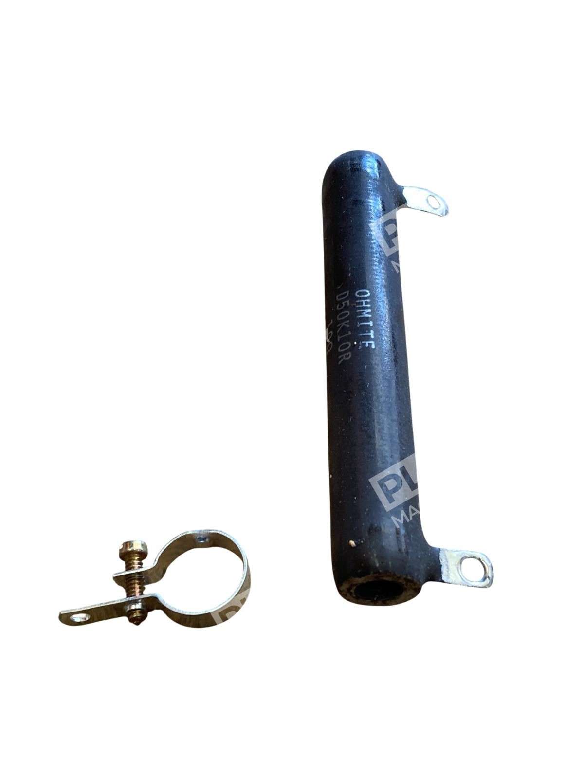 Ohmite D50K10R Adjustable Wirewound Power Resistor The Ohmite D50K10R is a high-power, adjustable wirewound resistor designed for applications requiring precise resistance settings. Part of the Dividohm® 210 Series, this resistor is ideal for adjusting circuits, obtaining specific resistance values, and accommodating various line voltages. Key Features Adjustable Resistance: Equipped with a nickel-plated steel adjustable lug, allowing for fine-tuning of resistance values to meet specific application requirements. High Power Rating: Capable of dissipating up to 50 watts of power, making it suitable for demanding applications. Durable Construction: Features a tubular ceramic core with a lead-free vitreous enamel coating, ensuring robustness and longevity. Versatile Mounting: The hollow core design permits secure fastening using spring-type clips or through bolts with washers, facilitating flexible installation options. Flame-Resistant Coating: The vitreous enamel coating provides flame resistance, enhancing safety in various operating environments. Technical Specifications Resistance: 10 ohms Power Rating: 50 watts Resistance Tolerance: ±10% Temperature Coefficient: ±260 ppm/°C Voltage Rating: 1,625 volts Resistor Terminals: Solder lug Resistor Mounting: Through-hole Product Length: 101.6 mm Diameter: 14.3 mm The Ohmite D50K10R adjustable wirewound power resistor combines precision, durability, and versatility, making it an excellent choice for applications requiring adjustable resistance in high-power settings.