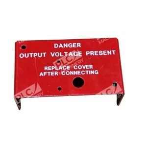 The “Danger Output Voltage Present Replace Cover After Connecting 49 102 001S Rev B” is a safety label designed to alert personnel to the presence of hazardous voltages within electrical equipment. This label serves as a critical reminder to ensure that all covers are securely replaced after making electrical connections, thereby preventing accidental contact with live circuits.