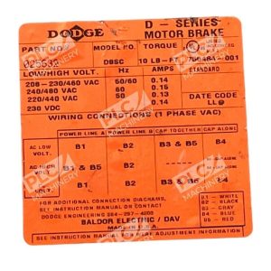 This Dodge Baldor Electric D-Series Motor Brake is a reliable and efficient choice for your mechanical power transmission needs. It is designed to provide excellent performance and durability, making it an ideal selection for industrial automation and motion control applications. The brand Dodge is known for its quality products, and this brake is no exception.