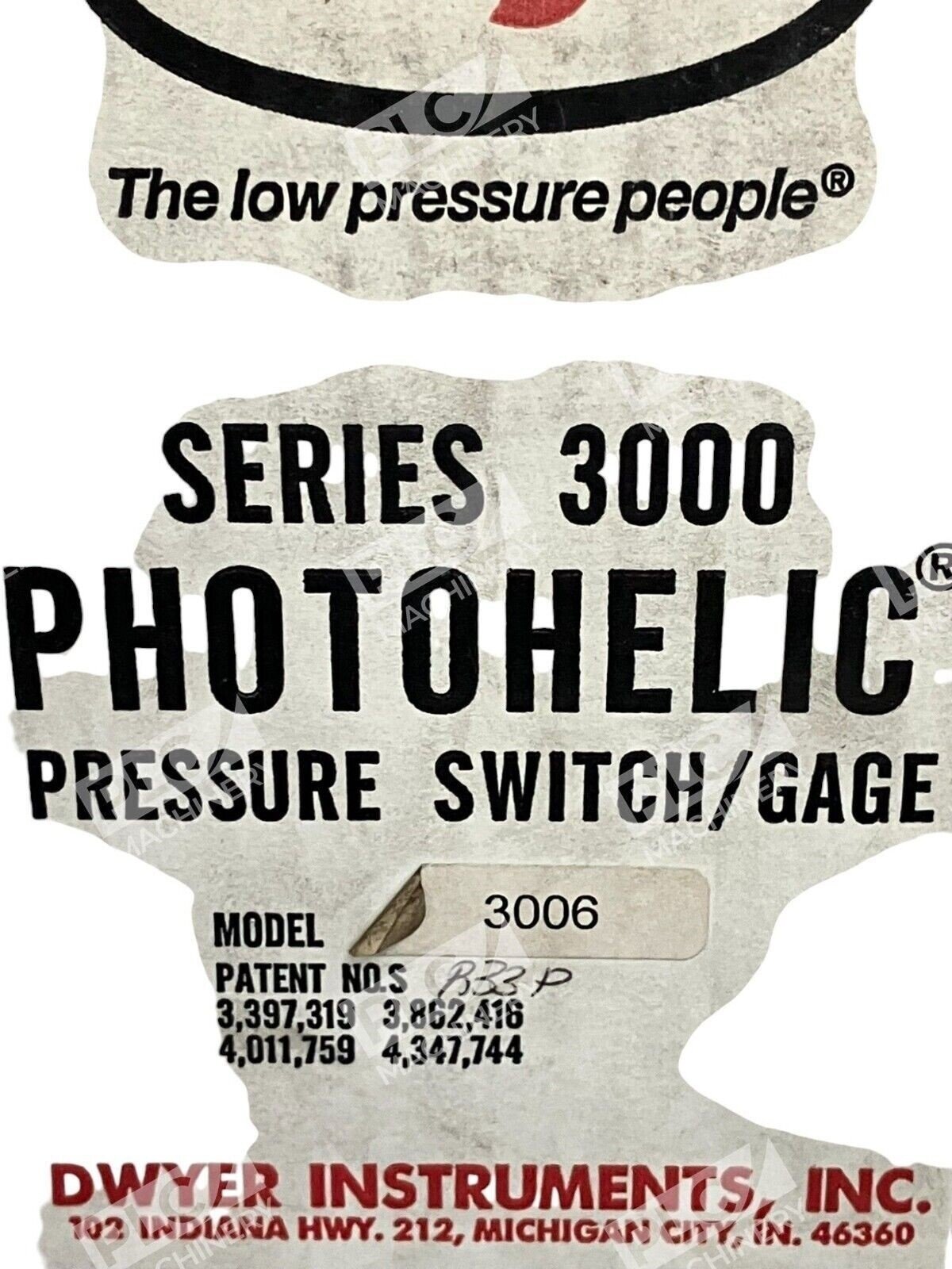 Dwyer Instruments Series 3000 Photohelic Pressure Switch Gage Model 3006