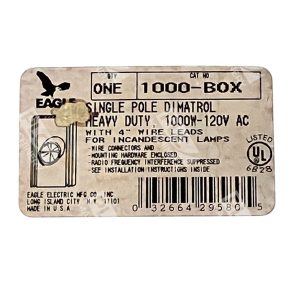 Experience the reliability and efficiency of the Eagle Electric Single Pole Dimatrol, designed for heavy-duty usage. With a robust 1000W-120V AC capacity, this model ensures consistent performance for your lighting needs. The product comes with a unique MPN of DM1000-BOX, indicative of its quality and durability.