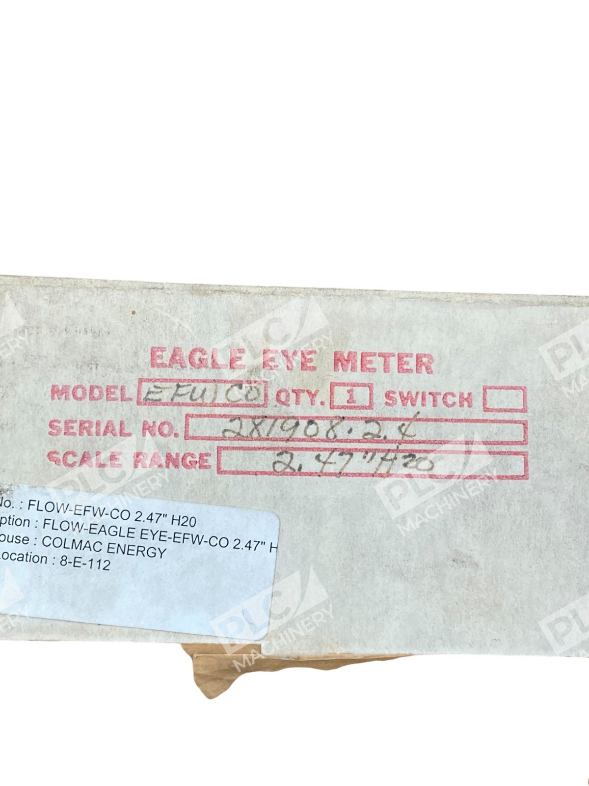 The Eagle Eye 0-50 SCFHx1000 2.47″H2O DP/Flow Meter EFW C0 5095 is a high-quality flow meter manufactured by Eagle Eye in the United States. This unit is designed for measuring flow rates accurately and efficiently, making it a valuable tool for businesses and industries that require precise measurements. With a unit quantity of one, this flow meter is a reliable and essential instrument for test, measurement, and inspection purposes. Its compact design and advanced technology ensure accurate readings, making it a must-have for any professional setting.