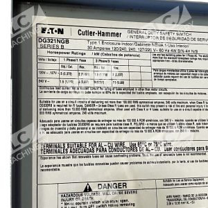 This Eaton Cutler-Hammer DG321NGB /B General Duty Safety Switch is a reliable and high-quality product for your industrial automation and motion control needs. With its brand name of Cutler Hammer, you can ensure that you are investing in a trusted and reputable brand for your business or industrial needs.