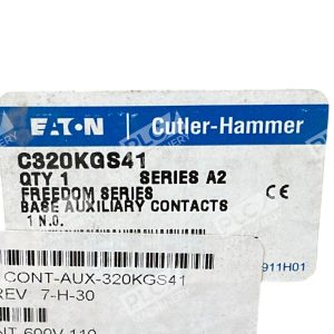 The Eaton Cutler Hammer Freedom Series Base Auxiliary Contacts C320KGS41 /A2 are high-quality electrical components designed for use in contactors. With a current rating of 5A, these auxiliary contacts from Eaton are reliable and efficient for various industrial and commercial applications. Perfect for enhancing the functionality of contactors, these base auxiliary contacts are an essential addition to any electrical setup.