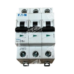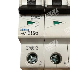 The Eaton xEffect FAZ-C15/3 is a high-performance, three-pole miniature circuit breaker (MCB) designed to provide reliable protection for electrical circuits in industrial and commercial applications. With a 15-ampere current rating and a C-curve tripping characteristic, it effectively safeguards against overloads and short circuits, making it suitable for circuits with moderate inrush currents.