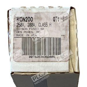 Experience the reliable protection of Edison’s 250V 200A Class H Fuse, model KON200, designed for superior electrical safeguarding. This cartridge fuse is crafted to fit seamlessly into compatible electrical systems, ensuring a secure and controlled power distribution.