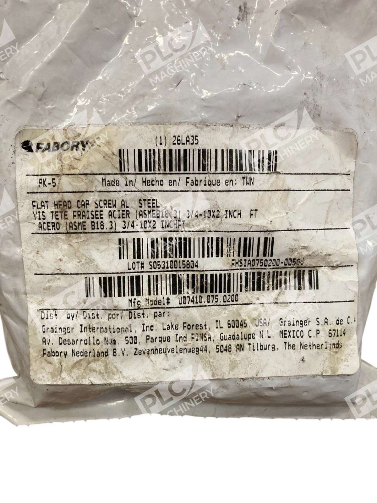 The Fabory 3/4-10X2 INCH FT Al. Steel Flat Head Cap Screw 26LA35 is a high-quality fastener designed for industrial use. With a durable nickel finish and a hex head style, these screws are perfect for various applications. The 1-inch length provides ample grip for secure attachment, while the bag of 5 ensures you have plenty on hand for your projects. Made by the trusted brand FABORY, these screws offer reliability and strength for your business or industrial needs.
